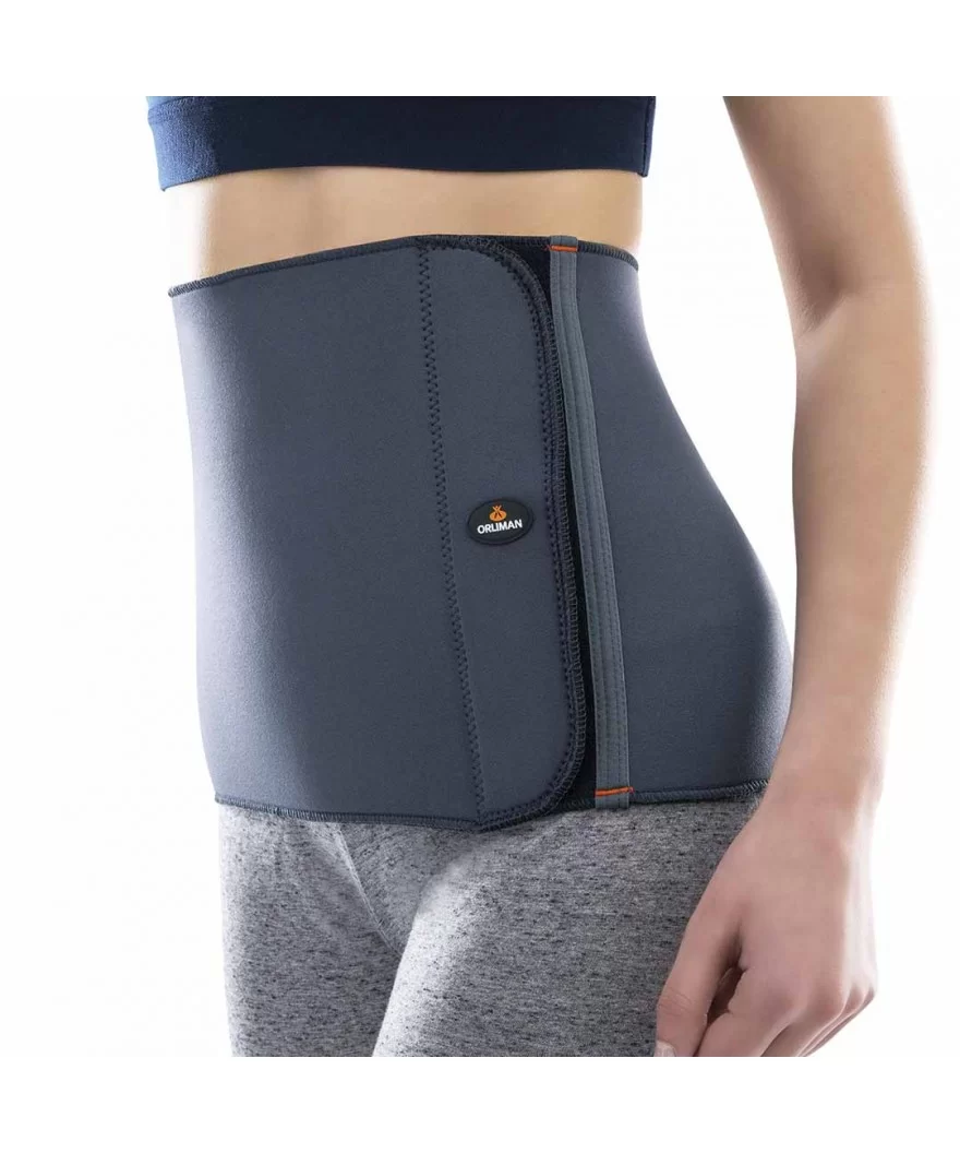 Banda abdominal de neopreno con sistema de cierre rápido en la zona anterior.